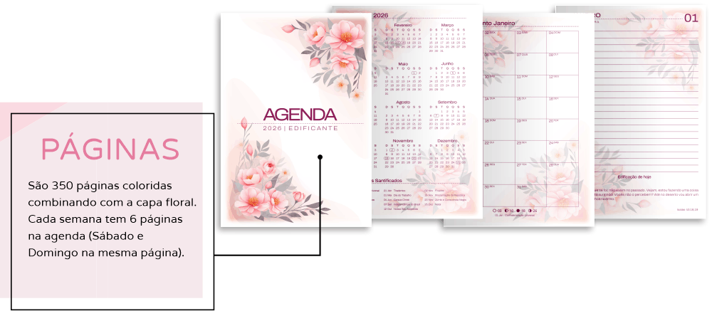 Transforme sua rotina em momentos de fé, organização e inspiração com a agenda floral edificante 2026 personalizada. Pensada para quem deseja começar o ano com propósito e equílibrio, esta agenda cristã personalizada combina beleza, funcionalidade e mensagens que tocam o coração todos os dias.