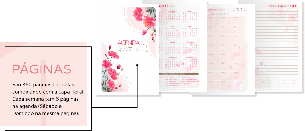 A agenda floral 2026 é perfeita para quem busca uma agenda personalizada com seu nome, cheia de charme e qualidade, para planejar cada dia com mais inspiração.